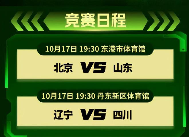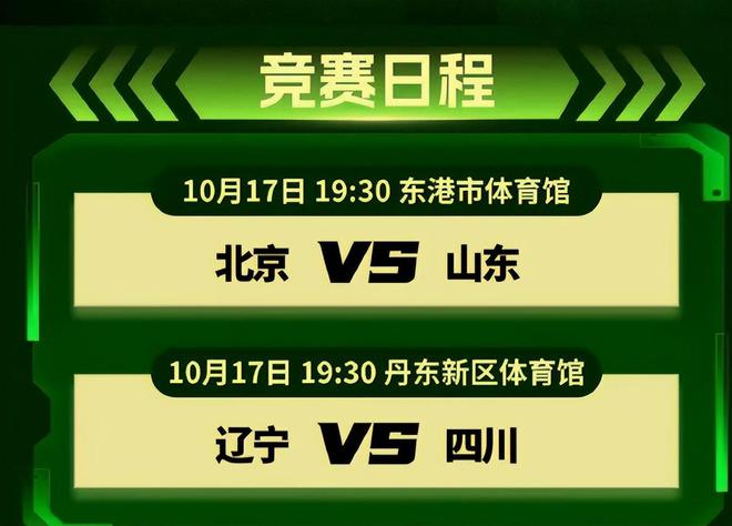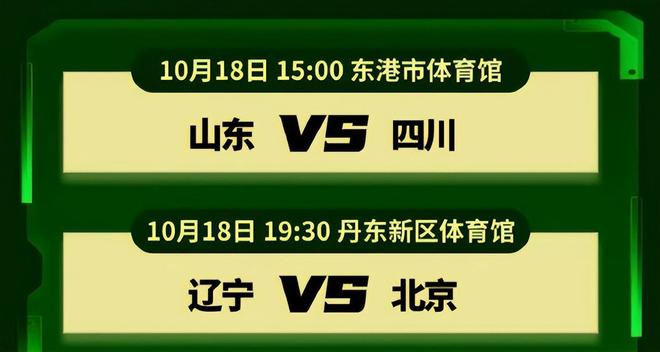 10月19日下午3点,安排在丹东新区体育馆的对阵双方是四川男篮和北京男篮,晚上7点30在东港市体育馆鸣锣开赛的是辽篮对阵山东男篮的比赛。